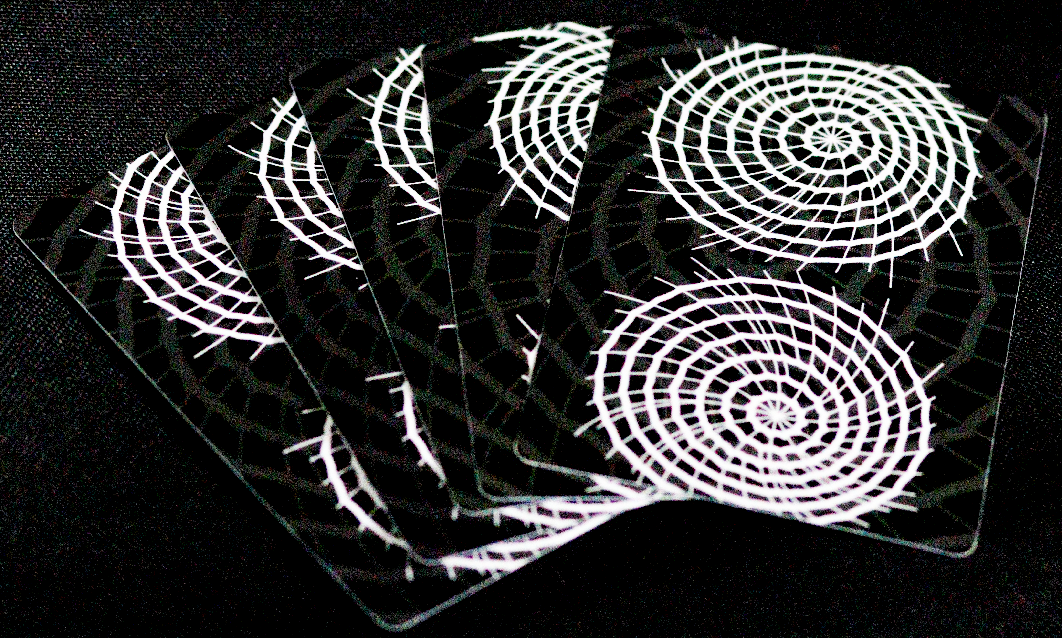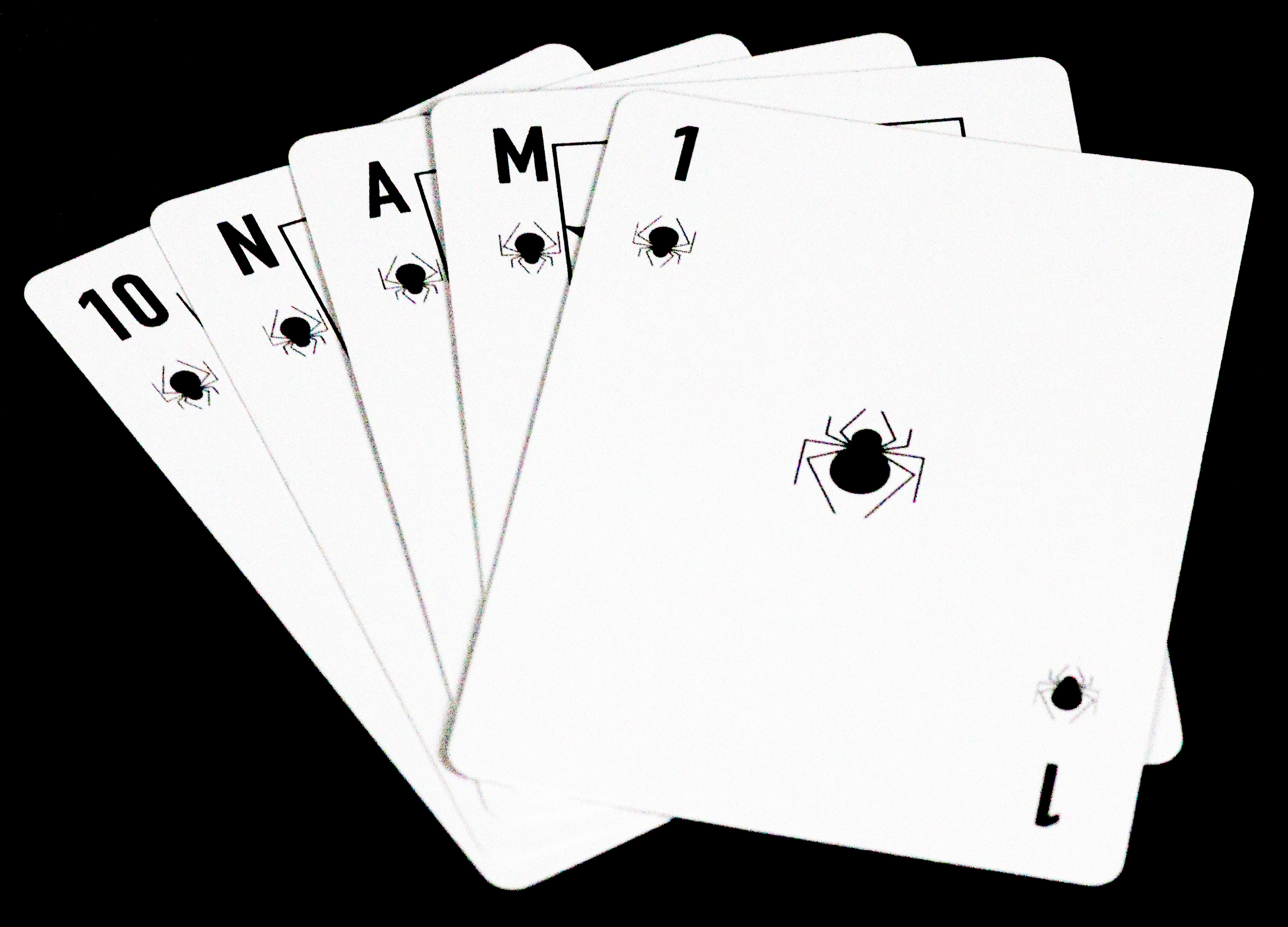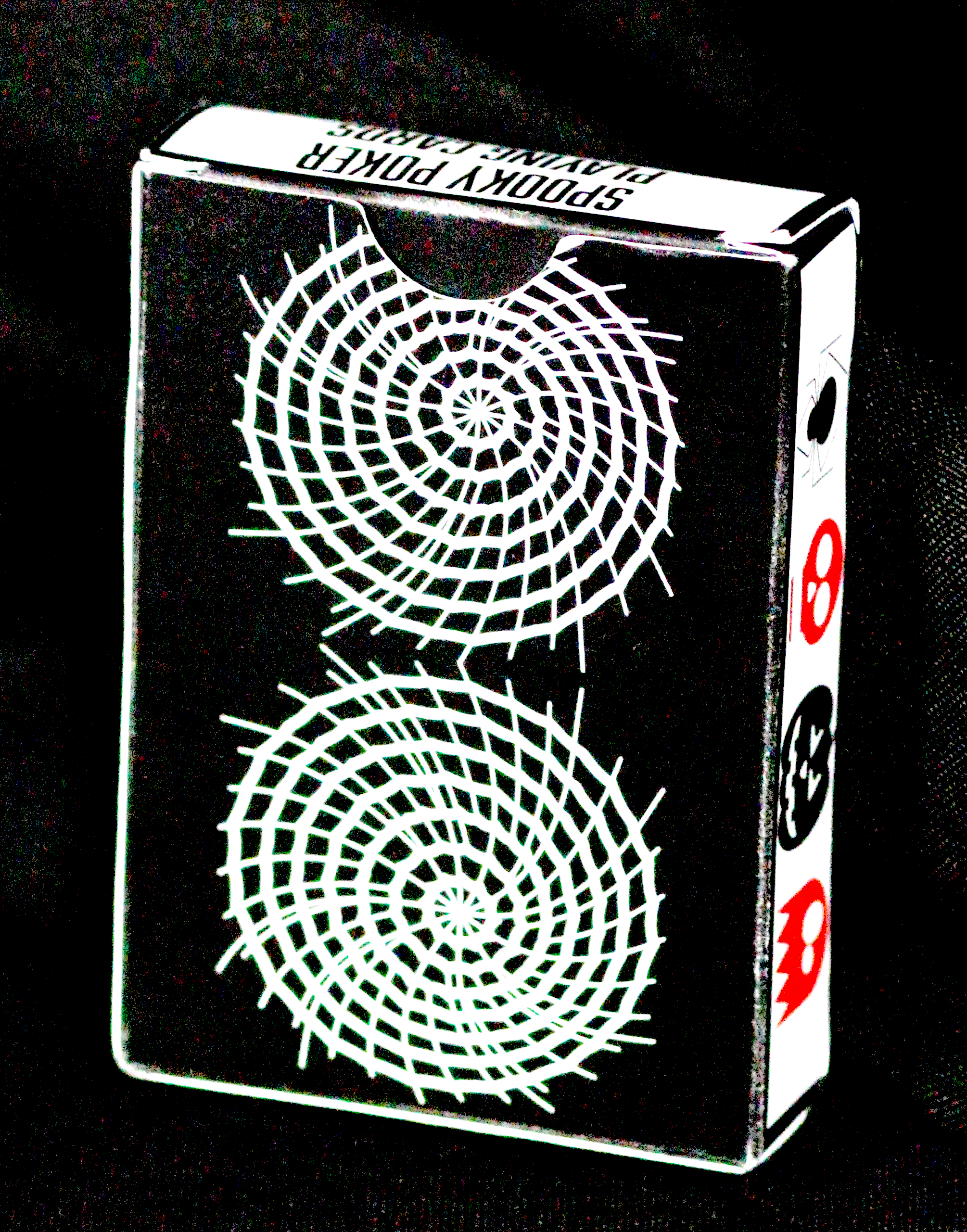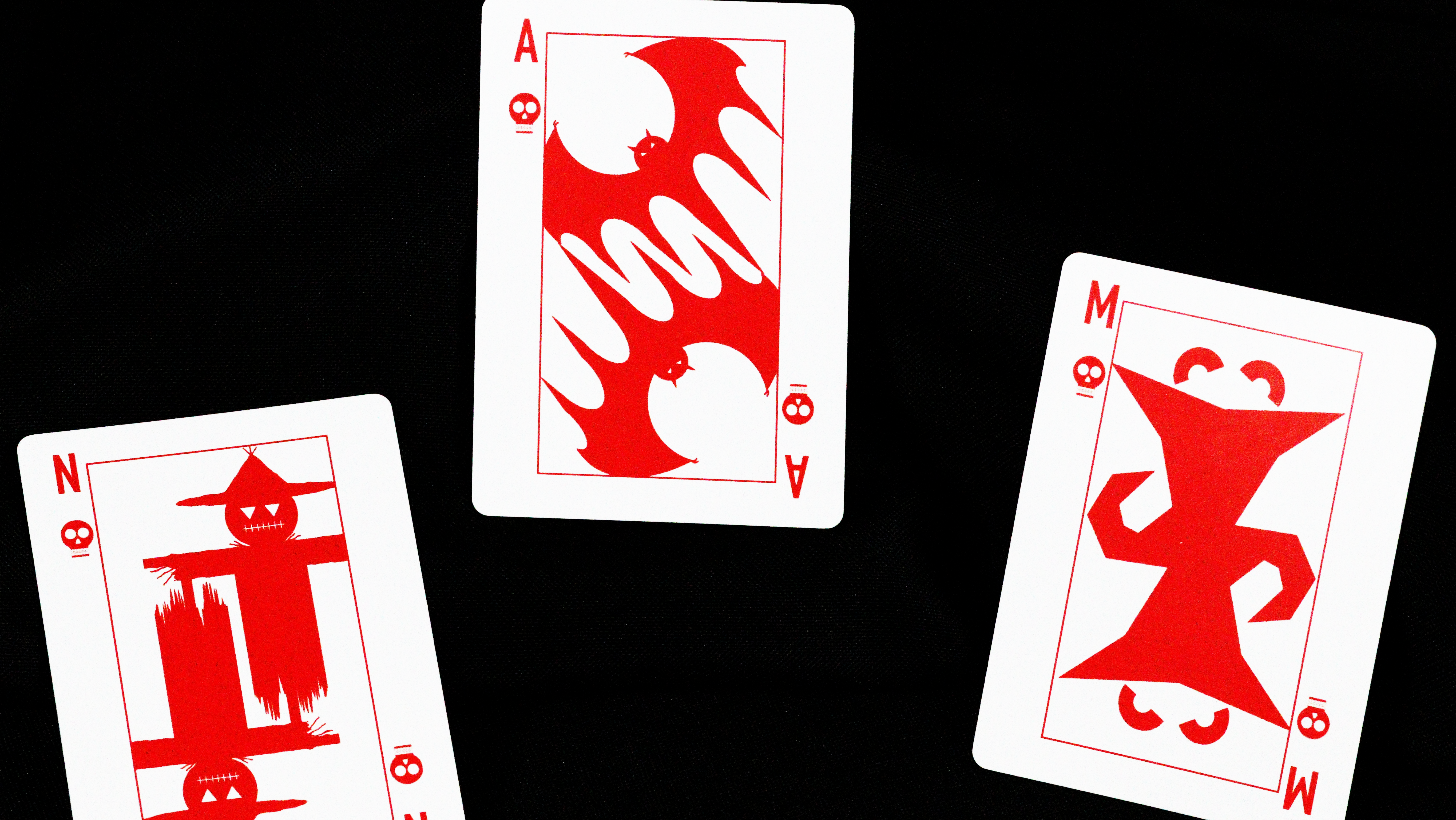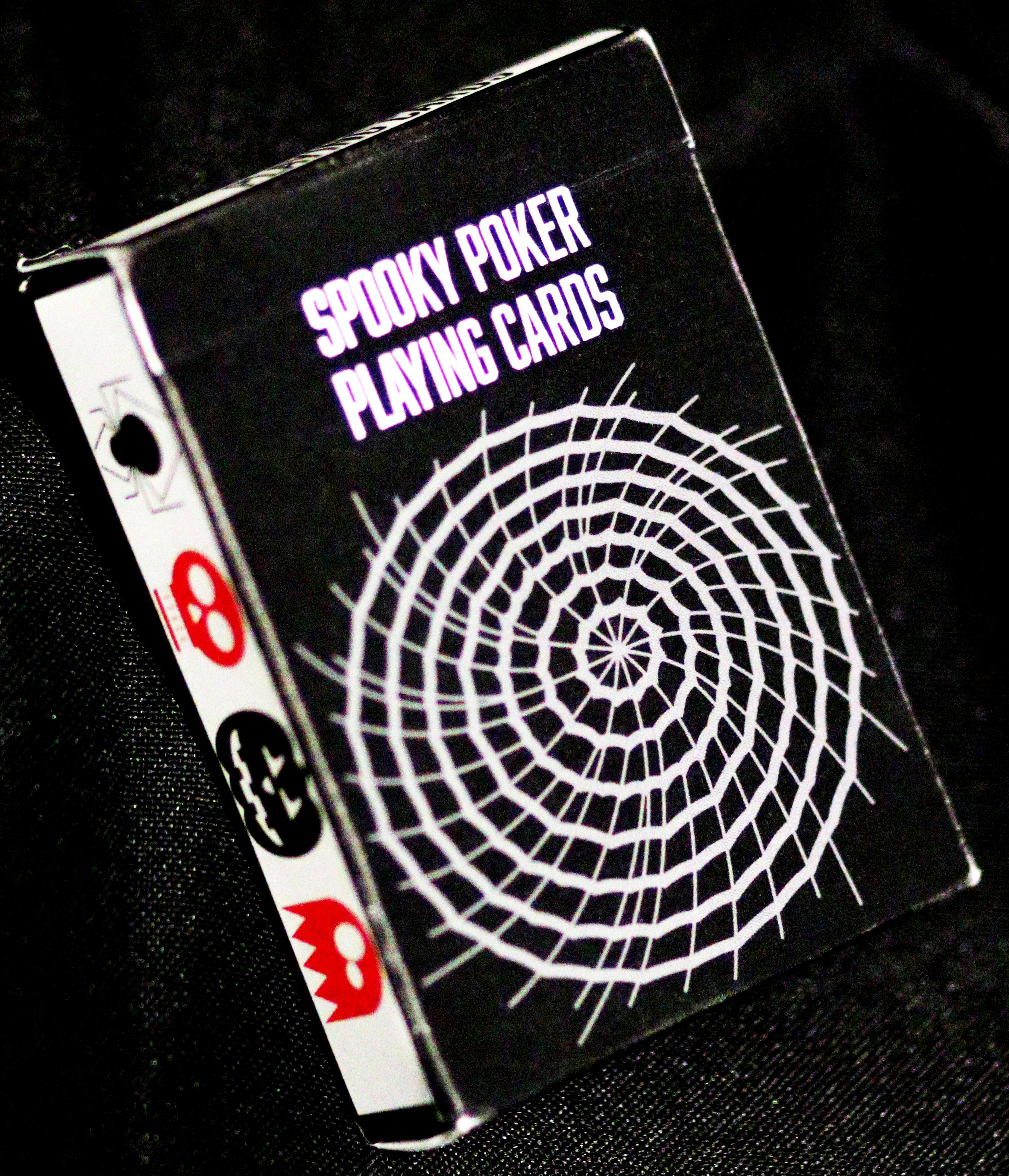 The Spooky Suits Poker Deck is different from the standard poker deck. The suits and the face cards are different. Instead of Spades, Hearts, Clubs, and Diamonds, the suits are Spiders, Skulls, Pumpkins, and Ghosts respectively. Instead of the Jack, Queen, and King cards, they are Novice, Artist, and Master cards.